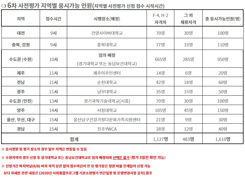 이번 시험은 코로나19로 인하여 평가 장소 임차에 어려움이 있어 평가 지역 및 정원이 축소되어 시행됩니다.